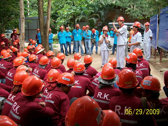 泰國(guó)京都項(xiàng)目部是我公司的重點(diǎn)項(xiàng)目,兩條萬(wàn)噸級(jí)水泥生產(chǎn)線同時(shí)上馬余熱發(fā)電項(xiàng)目在全球范圍內(nèi)尚屬首次,項(xiàng)目技術(shù)難關(guān)多,施工難度大,而作為全球第二大水泥生產(chǎn)商的HOLCIM集團(tuán)對(duì)于安全生產(chǎn)工作的要求極為嚴(yán)格。這就要求項(xiàng)目實(shí)施過(guò)程中不僅要保進(jìn)度,保質(zhì)量,更是要著力注重安全生產(chǎn)工作,始終將安全生產(chǎn)放在所有工作任務(wù)的首位。