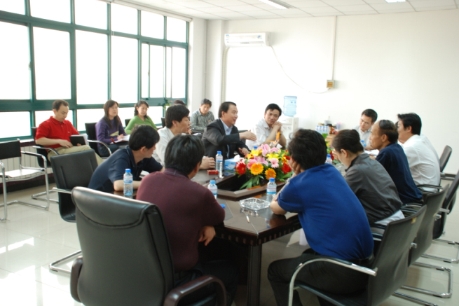 5月8日下午,中國(guó)中材集團(tuán)公司劉志江副總經(jīng)理、工程部劉建民部長(zhǎng)等一行來(lái)天津市北辰科技園考察投資環(huán)境時(shí),到中材節(jié)能發(fā)展有限公司檢查指導(dǎo)工作,與中材節(jié)能部分管理層成員以及部分中層人員進(jìn)行了座談。中材節(jié)能發(fā)展有限公司董事長(zhǎng)張奇、總經(jīng)理何新平分別作了工作匯報(bào)。隨同劉總考察的還有中材集團(tuán)天津礦山公司段志春總經(jīng)理、南京礦山公司劉峰山總經(jīng)理、兗州礦山公司孔繁運(yùn)總經(jīng)理、西安工程公司朱發(fā)良總經(jīng)理等兄弟單位領(lǐng)導(dǎo)。