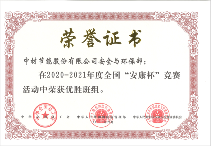 中材節(jié)能安全環(huán)保部獲2020-2021年度全國“安康杯”競賽優(yōu)勝班組榮譽(yù)稱號