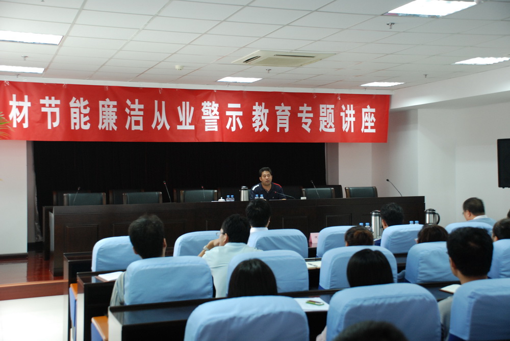 9月3日,中材節(jié)能舉辦廉潔從業(yè)警示教育專題講座,邀請(qǐng)全國(guó)十佳反貪局長(zhǎng)、天津市北辰區(qū)人民檢察院偵查監(jiān)督科科長(zhǎng)謝玉忠作專題講座。講座由公司黨委書記劉習(xí)德主持。公司總經(jīng)理何新平等在津經(jīng)營(yíng)班子成員、本部各職能部門負(fù)責(zé)人等干部職工共90余人聽(tīng)取了講座。