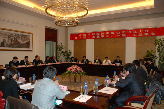 當日,中材節(jié)能在天津瑞景大酒店召開了變更設立股份公司創(chuàng)立大會及一屆一次董事會、監(jiān)事會。集團董事長譚仲明,副總經理于國波,總法律顧問、法律事務部部長盧新華,綜合部副部長張忠海,中材節(jié)能其他股東代表、董事、監(jiān)事、高級管理人員出席了會議。會議由中材節(jié)能董事長張奇主持。
