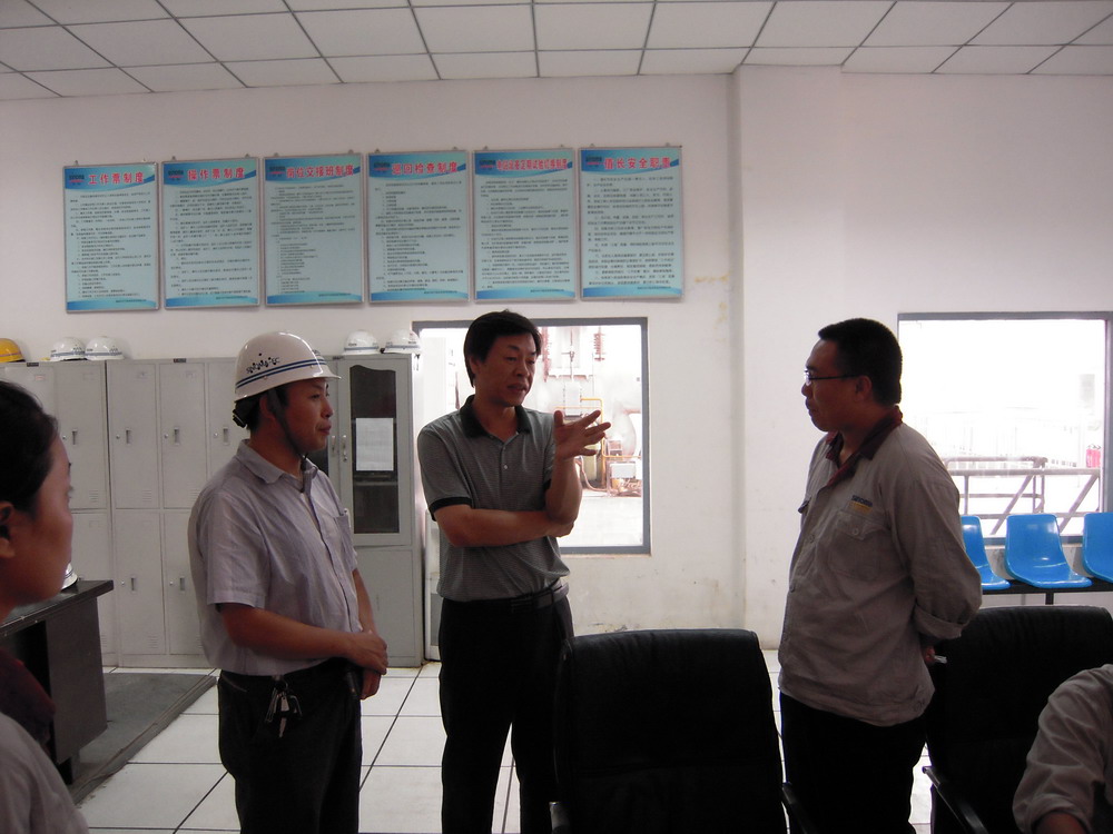 2011年7月21日,張奇董事長冒著炎炎酷暑,在投資部部長楊巍、副部長季敏海的陪同下,來到鹿泉中材節(jié)能余熱發(fā)電有限公司慰問電站員工并視察指導(dǎo)工作。