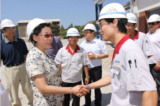 聽取匯報后,黃丹華代表國務(wù)院國資委對所有海外工作人員所做出的努力表示感謝,對中材集團(tuán)的國際化戰(zhàn)略方針及經(jīng)營策略予以贊同,對項目部的管理水平表示認(rèn)可。她說,國內(nèi)外項目存在著很大不同,一定要重視國外項目,關(guān)心國外項目的職工,發(fā)揮黨員、干部的模范帶頭作用,把項目做好、做實。