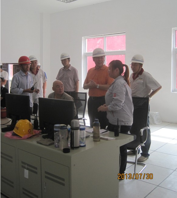 7月30日上午9時,夏日炎炎驕陽似火,總裁胡也明來到中聯(lián)美景水泥有限公司4000t/d水泥熟料生產(chǎn)線配套余熱發(fā)電項目建設(shè)工地,深入到循環(huán)水、窯頭鍋爐、窯尾鍋爐及汽輪機房施工區(qū)域認真查看了現(xiàn)場施工情況,并對現(xiàn)場中存在的安全問題進行了指正。在汽機控制室,胡總仔細詢問了電站操作人員的日常工作、學習情況,并向施工、調(diào)試人員了解設(shè)備安裝和系統(tǒng)調(diào)試的進展。