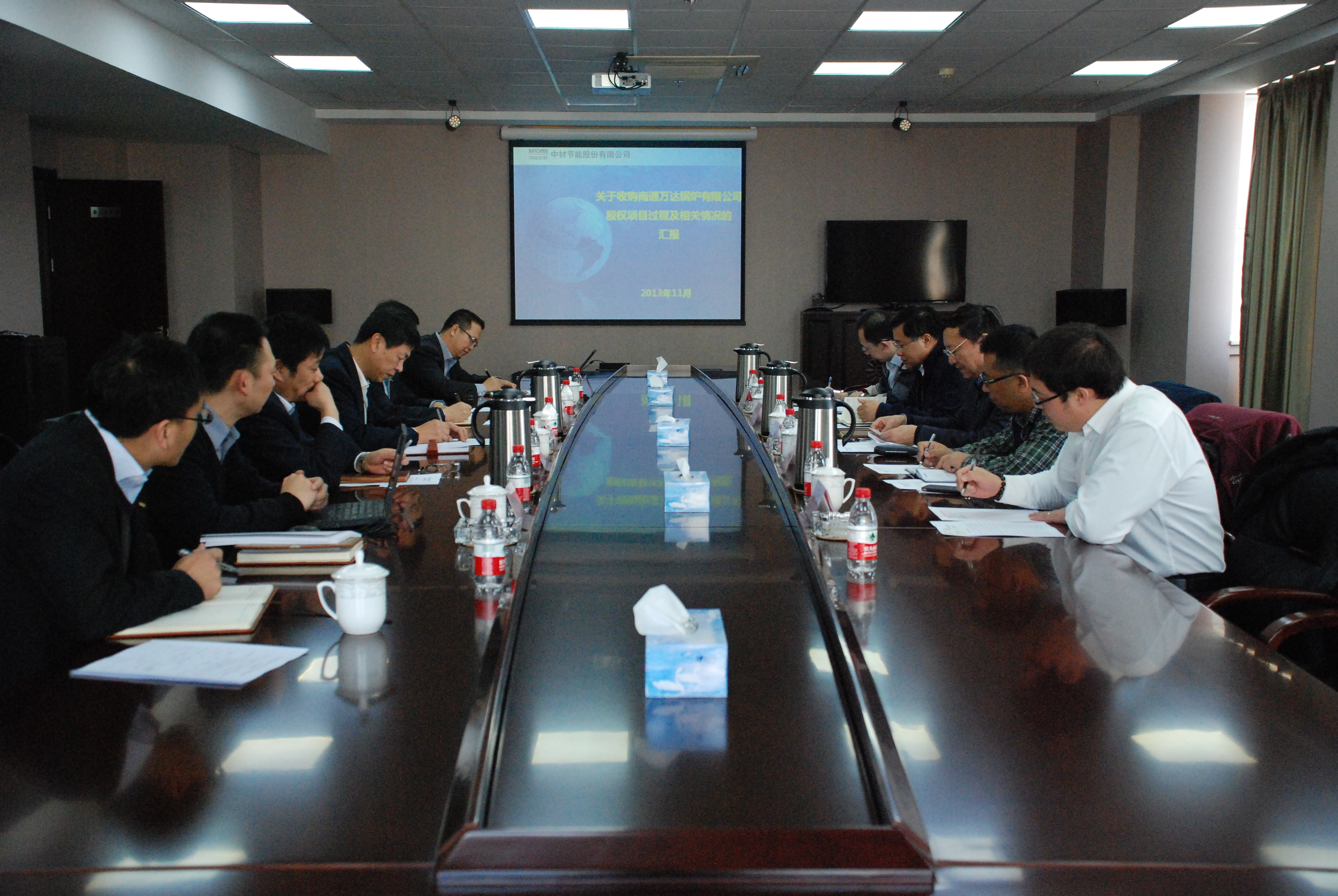 11月15日,國資委監(jiān)事會第25辦陳琦良主任一行,在中材股份副總裁余明清、集團投發(fā)部彭雪飛經(jīng)理的陪同下,到中材節(jié)能調(diào)研。公司董事長張奇、總裁胡也明、黨委書記劉習(xí)德、副總裁兼董事會秘書楊澤學(xué)、證券投資部副部長黃劍鋒等參加專題匯報會。