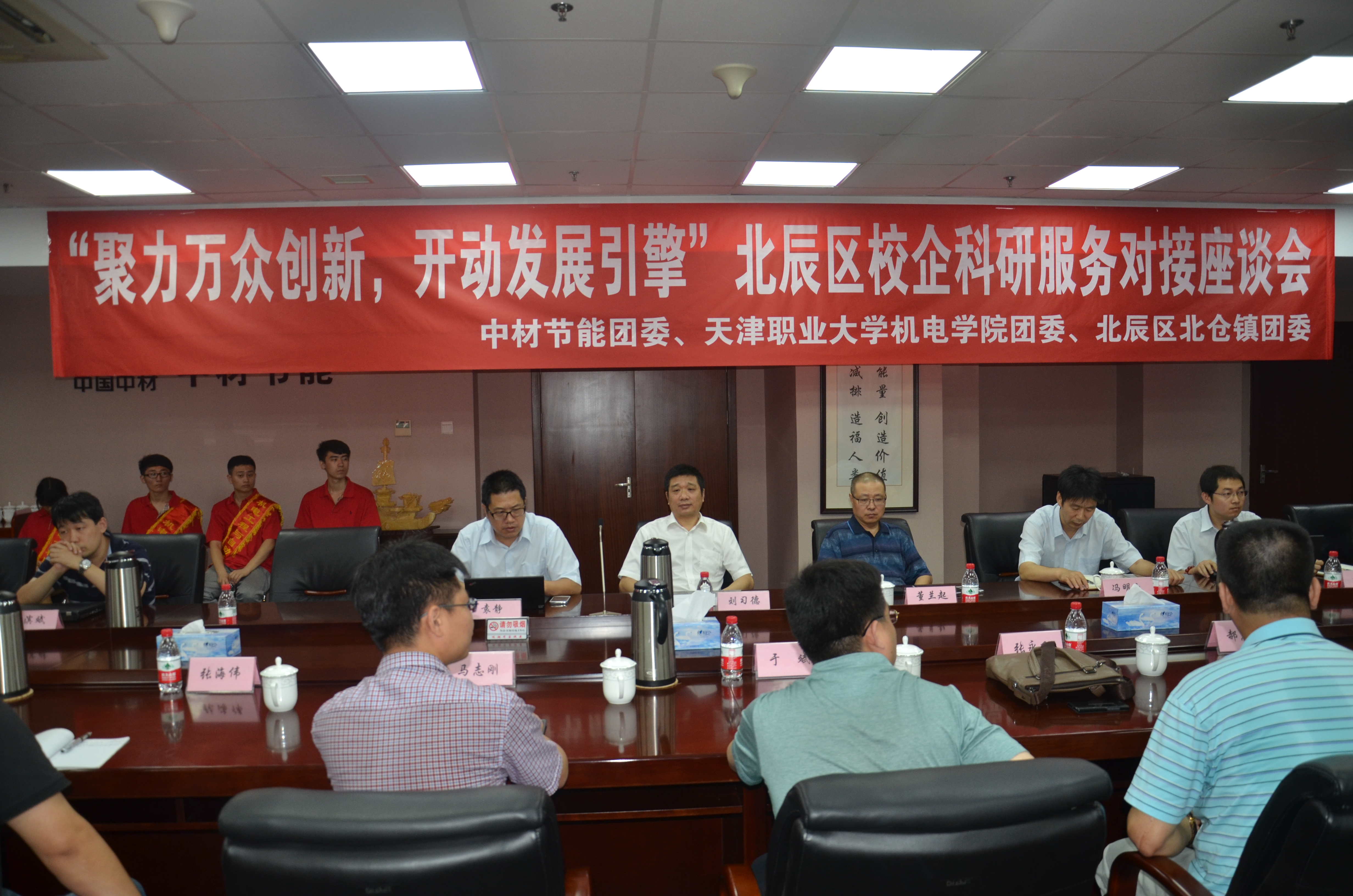 近日,由中材節(jié)能團(tuán)委、北辰區(qū)團(tuán)委、天津職業(yè)大學(xué)團(tuán)委聯(lián)合組織的“聚力萬眾創(chuàng)新,開啟發(fā)展引擎”---北辰區(qū)校企科研服務(wù)對接座談會在中材節(jié)能21樓會議室召開。北辰區(qū)團(tuán)委書記于斌、副書記馬志剛,天津職業(yè)大學(xué)機電學(xué)院副院長張永飛,公司黨委書記劉習(xí)德、總工程師董蘭起等參加了會議。