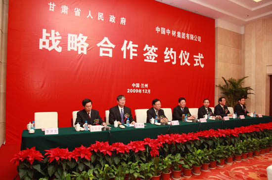 甘肅省委書記陸浩,省長(zhǎng)徐守盛,省委常委、省委秘書長(zhǎng)姜信治,副省長(zhǎng)石軍,省政府秘書長(zhǎng)李沛文、省委副秘書長(zhǎng)、省委政研室主任賈廷權(quán),省政府副秘書長(zhǎng)贠建民;省發(fā)改委主任趙春,省工業(yè)和信息委主任李平,省財(cái)政廳廳長(zhǎng)周多明,省國(guó)資委主任馬艾武;中材集團(tuán)董事長(zhǎng)、中材股份董事長(zhǎng)譚仲明,中材集團(tuán)黨委書記于世良,中材集團(tuán)黨委常委、中材股份總裁周育先,中材股份副總裁隋玉民、王廣林;甘肅祁連山建材控股有限公司董事長(zhǎng)楊皓,祁連山控股總經(jīng)理、祁連山水泥董事長(zhǎng)脫利成等出席股權(quán)轉(zhuǎn)讓儀式。儀式由李沛文主持。